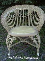 Be sure to turn the chair upside down and paint all visible areas first, then tip upright and apply paint to all visible areas, getting into all the crevices and corners. Give at least two light coats of paint and be sure to clean up any spills and drips immediately and don’t “glob” on the paint with thick coats. Let all coats of paint dry before applying the next, and make sure you don’t sit in the chair until the paint has thoroughly cured for about a week. Enjoy your newly painted wicker furniture! Disclaimer: This article was written by Cathryn Peters based on her own personal experiences and knowledge about the antique wicker furniture industry acquired over the last 40+ years of providing wicker restoration services. Viewers may follow these directions using their own best judgment and no liability concerning your results is assumed by The Wicker Woman or Cathryn Peters. for someone to make any wicker repairs that might be needed or to strip, prep and repaint the wicker for you.