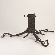 At The Home Depot; Dress your tree up all the way down to its trunk with a heavy-duty yet decorative base. Made of powder-coated cast iron, this classic stand will give your tree a very traditional feel. Vintage With the Works Show off your tree in high retro style with a vintage Spincraft stand that not only rotates your tree, but plays holiday music as well.