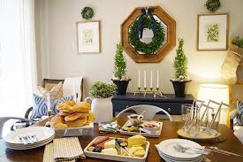 look for them at garden centers or online. The coating restricts root growth so plants are shorter than average and live just one season, but serious advantages include a fresh presentation style and no need for water, sunlight, soil or the proverbial green thumb. Of course, the traditional method of growing bulbs in glass forcing vases continues to appeal with classic beauty and repeat seasons. Need something above your buffet? Hang Christmas cards, embellished tags and ornaments from a single evergreen branch tacked to the wall. Wrap wide green ribbon in bands around a square vase, then fill with decorated winterberry branches. Simple red votives with white candles provide a glow at a safe distance. Bring a woodland scene inside. Gather bare branches from the garden, and arrange them in a narrow glass vase filled with artificial snow. More “snow” (cotton tufts) drifts on branches. Cardinals alight as if to gather the bright berries that we cut from faux sprays and wired on.