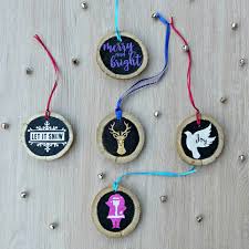Login Join the Hip2Save Family Sign up for our newsletter The links in the post below may be affiliate links. Read the full disclosure. If you like making homemade Christmas ornaments, try this easy and frugal craft using sliced pieces of wood and paint. This project offers a unique way to up-cycle any wood you may have on hand and also makes a thoughtful gift idea. Note that I used mesquite wood that I had at home and cut the pieces with a table saw. If you do not have access to a saw, you can purchase sliced birch pieces online or at your local craft store. DIY Sliced Wood Christmas Ornaments: 3/4 inch thick sliced wood about 3-4 inches in diameter small screw in eye hooks (from hardware store) holiday colored ribbon or twine craft acrylic paint of various colors small holiday themed or monogram stencils if desired (I used the Martha Stewart brand) Directions: Paint and embellish wood slices as desired and let dry. Screw in eye hooks to the top of each ornament and embellish with a ribbon or twine.