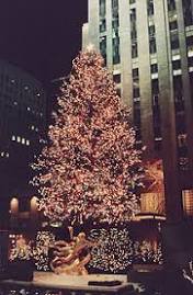 Rockefeller Center Christmas Tree photographed in December 1987, a 78 foot (24 m) high Norway Spruce decorated with 18,000 lights. The Rockefeller Center Christmas Tree is a large Christmas tree placed annually in Rockefeller Center, in Midtown Manhattan. The tree is erected in mid November and lit in a public ceremony in late November or early December. In recent years, the lighting has been broadcast live, to hundreds of millions, on NBC's Christmas in Rockefeller Center telecast on a Wednesday after Thanksgiving. The tree lighting ceremony is aired at the end of every broadcast, following live entertainment and the tree is lit by the current Mayor of New York City and special guests.[1] An estimated 125 million people visit the attraction each year. The tree, usually a Norway spruce 69 to 100 feet (21 to 30 m) tall, has been a national tradition each year since 1933.[3] The 2016 Christmas Tree Lighting took place on November 30, 2016; the tree remained on display until January 7, 2017.