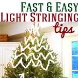 We'll help you create your best holiday tree yet, effortlessly and beautifully. How to Hang Lights on a Fresh-Cut Christmas Tree When hanging Christmas tree lights on a fresh tree, you should plan on using three 100-light sets for every foot of your tree's height. Lighting a tree requires patience and our simple steps: Instead of wrapping the lights around the tree in a maypole style, mentally divide the tree into three triangular sections, from top to bottom, around the tree's cone. Plug in the first string of lights, and nestle the last bulb on the string at the top of the tree next to the trunk. Weave the tree lights back and forth across the triangle, being careful not to cross the cord over itself. When you reach the end of the first string, plug in the next set and continue weaving the lights back and forth until you reach the bottom, connecting no more than 300 Christmas lights end to end. Repeat this procedure for the remaining triangles. Step back from the tree and look at it with your eyes crossed, or squint until the tree is blurry.