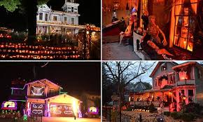 Jim and Ceci Mains have turned their Halloween home in Vancouver, Oregon into a high-tech masterpiece As if the yard wasn't scary enough, there's a screaming skeleton waiting for trick-or-treaters in their truck And the couple has added this spooky skull projection and a massive spider and cobweb that would freak out more than people who suffer from arachnophobia This spooky house in Greenville, South Carolina is sure to shine brighter than the rest thanks to plenty of glowing lights The Mains will up the amp even more on Halloween night, hiring live actors to play the roles of Jack Skeleton from Nightmare Before Christmas and Pennywise the Clone from Stephen King's It to truly scare their guests. California may be called paradise, but one resident has created the 'gate to hell' right in his front yard in honor of the holiday.Ricardo Sanchez transformed his front yard into a spooky graveyard illuminated by fog and green light, with a skeleton fighting to get out of wooden slabs from a neon purple underworld.