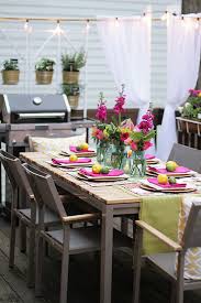 christmas table decorating ideas for cheapWe do live in a neighborhood, so sometimes it feels like you’re on a stage and not in the privacy of your own home when you’re out on the backyard deck.