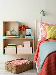 bedroom decor for yellow walls Uniform shelving units can push out into a small room, overpowering it and making it feel smaller than it really is.