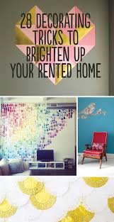 Hang an office supply organizer than doubles as art. Sew by following this tutorial and hang with temporary hooks. When moving out, just roll the organizer up with the supplies inside, for easy transportation. Create an oversized confetti mural. Simply take colored pieces of paper, cut them into circles, and stick them to the wall using painters tape or poster tack. Make scalloped borders for your shelves. All you need are Post-Its and tape to feel like you live in Hello Kitty’s house. Use velcro strips to hang framed photos. Use paper to create geometric patchwork art. You can even make it closer to your bed, so it doubles as a temporary headboard. Or make it heart-shaped. Collage paper circles into a happy piece of art. Paper circles: not just giant confetti . Hang a colorful garland around your door. Maybe a floral version, like this one. Transform an old shutter door into an organizer. No need to nail anything into the wall and you can customize it to use in all sorts of rooms.