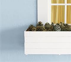 Then grab that cut square of sheet metal and place it on the crate side, making sure it is evenly placed. Use the staple gun and staples to staple the sheet metal to the crate. Repeat Steps 1 through 3 with the other sides of the crate. Now it’s time to paint! Place your crate in an area that is paint-safe. I painted mine in my garage on a painter’s drop cloth with the garage open for ventilation. Coat your crate with the white spray paint. It took me three coats of spray paint to cover it completely. I let each coat dry before applying another. Once your crate is dry, add a burlap bow to make a gift box impact! Maybe sheet metal isn’t really your thing? I did another simpler version of this porch gift box using only crates and paint! For the candy-cane striped boxes here are your steps: Paint the crate white with white spray paint. Allow at least 30 minutes to dry. With the red paint and paintbrush, add red stripes to every-other slat on the crate. Allow time to dry completely!