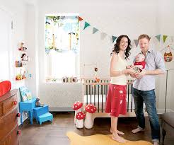 Buy the DIY Faux Hide Rug Set from Flor.Watch how easy it was to assemble the Flor rug!8 8 Facebook PinterestHeather Weston Monkey ChairI found this old school chair in the trash and gave it a kiddy makeover with paint, felt, and a braided yarn tail. A piece of covered floral wire gives the tail its shape.Download the templates for the monkey chair here.9 9 Facebook PinterestHeather Weston Playful Knitted PennantsThis garland, knitted by my mom and her friends, gives Oliver's first bedroom a celebratory flair.Facebook PinterestHeather Weston Stuffed Animal StorageA basic shoe rack solves the storage problem for Oliver's plush pals. Buy this shoe organizer from Bed, Bath and Beyond.Win Baby Gear! Facebook PinterestHeather Weston About Face PillowsThese pillows from Vintage Jane ($22) were one of my first nursery purchases.Buy these adorable pillows from Vintage Jane's Etsy shop.Facebook PinterestHeather Weston Sweet ShelvesThese little red shelves hold board books and knickknacks in Oliver's room.