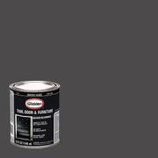 I start with the areas around the panels by using a good angled paint brush: The folks at Purdy sent me a set to use and I was in heaven. I used the 1.5 inch angled brush for the little insets in the door: Purdy brushes are the best – hands down. And I’m not saying that cause I got a set. I love them and use them all the time! The BIN primer is so thin, you don’t have to worry too much about brush strokes: I didn’t take the hardware off to paint the back of the door – I just taped around it and it worked out pretty well. I wish I would have taken if off, but that’s a whole other post. I finished up the door with the primer and let it dry: I use a small roller for the raised panels and the area around them. (Steps 2, 3 and 4 on the pic above.) I started the same process again with my black paint. I use Black Suede from Behr for all of my black paint projects and LOVE it: My friend Kate has mentioned to use Floetrol to cut down on brush strokes: