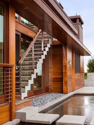 Explore Stain as a Color Option As with traditional painted colors, stain offers a wide range of brights and lights to choose from. Some—particularly midrange hues—work well on a variety of home styles. As with paint colors, it's best to stain a swath of exterior wall in different versions and see how the color looks and feels throughout the day. For more classically styled homes, white is a traditional accent for window trim, pillars, and doors. Get Inspired by Materials in Place of Paint Many people equate contemporary homes with a fairly limited exterior color palette. That's too bad because modern-style homes actually offer inspiration for a diverse way to showcase color and pattern in any style of home, even if the palette is fairly neutral. If you're building new or adding on to your home, consider all the shapes and sizes of brick as a way to accent your home's main color. Here, the pattern on the brick section of the front facade is nearly mosaiclike. Accents that are functional on a home can be a wonderful way to include different colors or materials, too, such as the copper drain pipes, which add richness and sheen to this exterior palette.