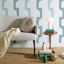 Bright color combinations such as the one shown are perfect for a playroom, work area, or dorm room. For a subtler tone-on-tone appearance, choose a combination of soft cream and deep taupe hues.-- 1- and 2-inch-wide painter's tape-- Behr semigloss latex interior paints: Bicycle Yellow 370A-3 (BY), Candy Coated 120B-5 (CC), Fresh Peaches 260C-3 (FP), Ocean Dream 580B-4 (OD), Peas in a Pod 430B-4 (PP)-- 2-inch flat trim brush1. Using both widths of painter's tape, a yardstick, and the weave of the rug as a guide, mask off a pattern similar to the one shown. For this rug, we used 1-inch-wide painter's tape to mask off the horizontal stripes and 2-inch-wide painter's tape to mask off the vertical stripes. Painted stripe widths vary from 6 to 13 inches.2. Dip the trim brush 1/4 inch into the paint color you're using for the upper-left rectangle, then pounce the brush vertically to fill in the section. Fill in the remaining blocks of the same color.3. Repeat with additional paint colors until all the blocks are filled.