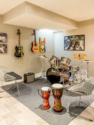 If you want to make a home studio, as well as a music room to play in, try to make two distinct zones. One will be for a control room, housing your recording and playback equipment, and the other will be a live room to play in. If you don’t have a large enough space for two rooms, use a sound baffler or even a heavy drape to make the two areas. If you do have room for a partition, install an internal window. Use carpet to deaden the sound in your live recording room, but make sure it complements your strong color scheme.Not everyone wants a music room that has dead acoustics that will help them to record well. If you fall into that category, for instance if you like to play piano alone and to be able to hear some of the sound reflected, then use hard surfaces on the floors and walls. Hard wood and ceramics are ideal materials to utilise as these will create a music room which has sound that reverberates. Laminate floors are a good choice for this purpose.If you like to play with other musicians, then a music room that reverberates too much can be a problem, particularly if you like to play loudly.