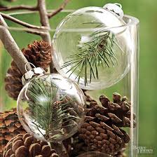 Add a natural vibe to this year's Christmas tree with vintage postcards. This is a botanical print, but any image you find will do the trick. Use a hole punch to create a hole at the top, thread a ribbon through, and hang. Budget project price: $1 Festive Christmas ornaments -- shop now! Make an Ombre Glittered Vase Transform a plain glass cylinder into a sparkling centerpiece with just a couple supplies. Simply pick your favorite holiday color scheme and get started! Budget project price: $9 Turn your mantelpiece into a festive display of sweet treats. Choose your holiday color scheme, and fill clear glass containers with color-coordinated candies. If you don't have a mantel, set the display on a tabletop or anywhere you want an added dose of color. Bring the winter hues inside with crafts decked in rustic evergreens and snowy whites. Spray-paint pinecones gathered from your backyard, then nestle them in mini ceramic pots. (Coffee mugs also make cheap, cute vases.)