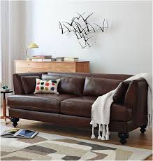 West Elm via Apartment Therapy Another way to minimize the visual weight of a set of leather furniture is to break it up. Keep the sofa and find a place for the other pieces. Supplement with upholstered chairs for a chic and collected look instead of a matchy matchy one.A leather sofa sitting all by its lonesome will dominate a space if you let it. Take the focus away from leather furniture by layering a room with other furnishings in different finishes from bookcases to console tables to ottomans and end tables. This first image is of two leather chairs and not a sofa, but a great illustration of the technique. Notice how the blue cabinets behind and the striped fabric on the ottoman in front balance the supple leather furniture set in between. Bring in dynamic artwork and living trees. Soften with pale fabrics to add contrast and metallic accents for interesting texture. This image is another example of how to decorate around a dark sofa, even if it’s not leather.