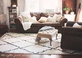 I love the airy and clean looks of your decorating style, but the leather furniture purchased by my husband is big, dark, and manly. We don’t have many windows and the walls are a light beige (Latte by SW) and I decorate with a lot of whites, blacks and beiges but I just feel STUCK! Any suggestions for making the room feel more light and feminine?”This is a common dilemma, since many people own leather sofas and sectionals, and pieces upholstered in a traditional dark hide can feel visually heavy in a space. But I think it’s less about making a room feel more feminine and more about creating a room that is balanced with clever layering and accessorizing since (done right) leather sofas can be both attractive and comfortable. Here are five ideas I came up with to decorate around leather sofas. A traditional leather sofa is dark by nature so the easiest way to balance that out is to accent and/or surround it with plenty of light for desirable contrast. A paler hue on the walls, soft cream or white accent pillows, and/or a light or white coffee table will accomplish just that!