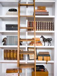 You Might Also Like...How to Install Fabric Wallcovering Designer David Bromstad added an unexpected touch to this otherwise traditional white bookcase by framing the shelves with large pieces of weathered wood suspended on metal rods. The wood's organic shape and smooth texture adds a sculptural element while drawing attention to the bookcases themselves. Fireplaces that project out from the wall are ideal for flanking with a bookcase, a cabinet or both, as designer Anisa Darnell has here. She kept their heights, color and basic framework the same for a consistent look. To draw attention to the fireplace, she covered the overmantel in reclaimed barn wood and added exterior lanterns instead of interior sconces. Forget the Dewey Decimal System; designer Courtney Novogratz let color be her guide when arranging this bookcase. By also varying the book heights and alternating between upright and horizontal placement, she created a sense of rhythm. Show low bookshelves some design love by using a repetitive color scheme — note how nicely the vintage zinc crates pair with the brushed steel table lamp — and varying the scale of items on display.