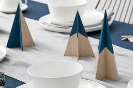 photography by katie parra for coco+kelley // styling by cassandra lavalle sources :: dishes b by brandie // gold flatware // gold chargers // glassware // stitched napkins // trees // nutcrackers // tablecloth from choice linens // wrapping paper by farewell paperieWe’re making Christmas easy this year, and that includes easy DIY projects – for kids, for craft-lovers, for anyone who loves a hand-made home. Stylist Emmaly Stewart created these cute balsawood trees for your table or mantel. Here’s how it’s done…You’ll need:3mm thick balsawood (available from art/craft stores) Paint/glitter/decorations to suit your Christmas table Step 1 – CutDecide on the size you want and mark two equally sized triangle on the balsa wood before cutting them out. Go carefully with the knife – a trip to the hospital will kill the festive mood very quickly.Step 2 – CreateMark the centre of the base of one of the triangles and cut out a narrow channel half way up its height.