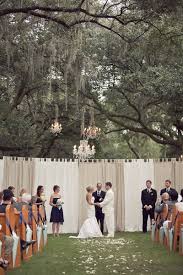 After the party is over, guests can pop a favor bag off the garland to take home. 11. Ask bridesmaids to help you forage for greenery and a little bit of fabric to make a romantic ceremony alter like this one. 12. Make crepe paper magnolias to add to greenery for a table runner / centerpiece that is a mix of real and faux. 13. Hang tiny glass candle holders to a fallen branch for a hanging decorative focal point perfect for the head table. 14. Create a cool string chandelier to use as a decoration over outdoor tables at the reception. 15. Reuse a piece of driftwood to create a hanging DIY candelabra. 16. Reuse antique birdcages to create unique centerpieces at your reception, that can be adorned with colorful, seasonal flowers and linens. 17. Make these cheerful hanging lanterns from a string of lights and paper bags. 18. Create a giant paper flower backdrop for guests to take photos. 19. Hang strands of outdoor bulb lights under a tree for a more intimate, room-like feel on your big day.